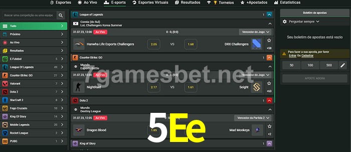 O 5Ee oferece uma grande seleção de opções de apostas em e-sports com probabilidades competitivas